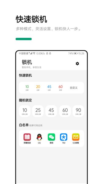 白名单功能:支持设置手机应用白名单,让您既能限制手机使用,又能保证必要应用的正常使用。