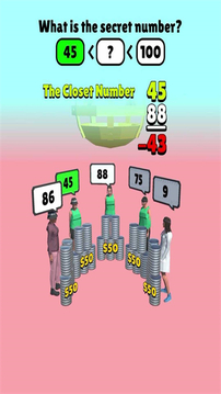 当你的猜测最接近正确答案时,将获得所有对手的金币,这种刺激的奖励机制让游戏充满竞争乐趣。不断变化的关卡内容确保每次游戏都能带来新鲜体验,避免重复感。游戏通过巧妙的数字谜题设计,持续挑战你的逻辑思维和判断能力,让每场对决都充满悬念与惊喜。