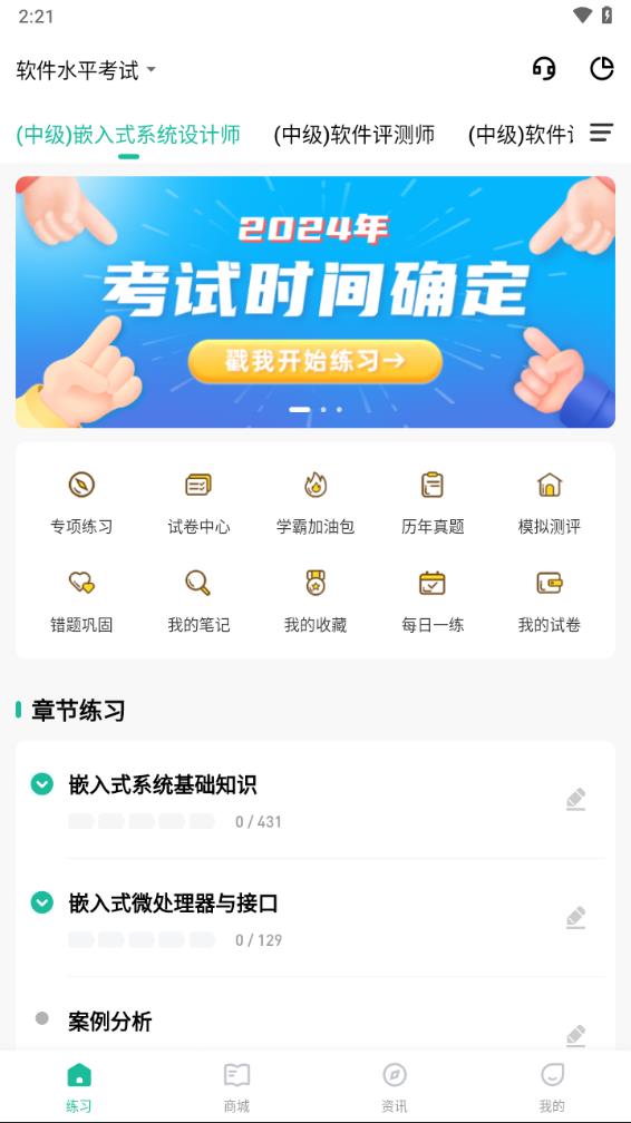 【章节练习】题库内所有软考科目的章节练习均可免费使用,并按知识点难度分级,循序渐进提升能力。
