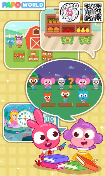 简洁明快的画面风格搭配丰富的动画效果,吸引孩子的注意力!