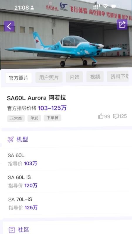 如此就可以查看机型的详情,详细了解机型的指导价。详情页包含技术参数、配置选项、性能曲线等专业数据,部分机型还提供飞行模拟视频演示。