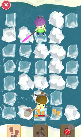 游戏非常简单易玩,我们可以更换武器对这些冰块进行致命一击!从锤子到冰镐,每种武器都有独特的破坏效果和冷却时间。游戏中的各种道具还是很强大的,一定要利用这些道具来帮助自己破冰哦!随机出现的增益道具可以临时强化角色能力或干扰对手行动。我们要不断的打破这些冰块,最后让对手掉进河里,完成胜利!游戏还设有特殊成就系统,完成特定挑战可获得限定奖励。