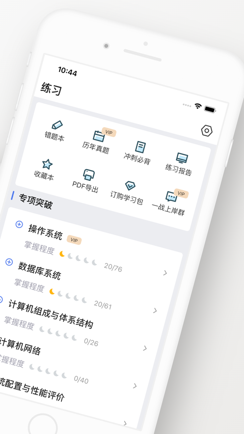 软件采用二级分类的知识点设计架构,将复杂的系统架构知识分解为易于掌握的模块。简洁明快的UI设计风格让学习过程更加轻松愉悦,精心设计的交互逻辑让操作更加流畅自然。无论是知识点查询还是模拟练习,都能获得最佳的使用体验,真正实现高效备考,助力考生一次过关!