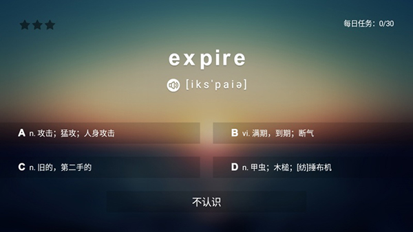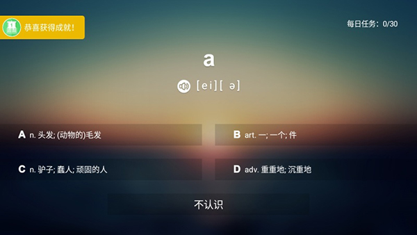 词库全面覆盖小学到考研各个阶段,满足不同用户的学习需求;创新的学习方法结合真人发音、详细释义和实用例句,让记忆更牢固;独特的成就系统激励用户持续学习,每完成一个阶段都能获得相应奖励;软件体积仅2M左右,对设备性能要求极低,即使是老旧电视也能流畅运行。此外,软件还支持学习进度云端同步,方便用户在不同设备间切换学习。