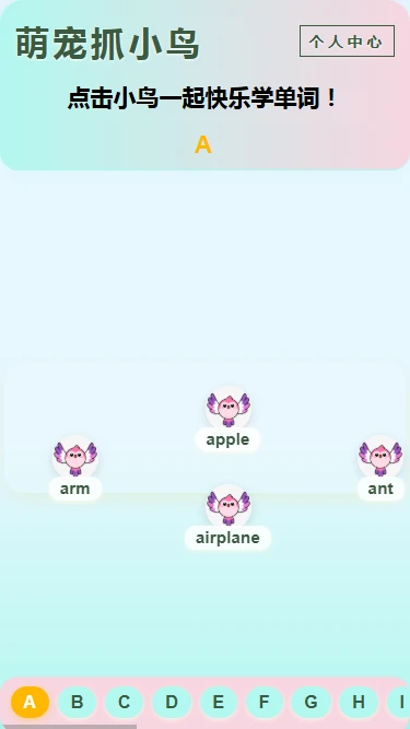 在这款寓教于乐的英语学习软件中,你可以通过点击屏幕上那些色彩缤纷、活泼可爱的小鸟来轻松掌握英语单词。每只小鸟都携带着一个独特的单词,当你轻轻点击它们时,这些单词就会以生动有趣的方式呈现出来,让你在不知不觉中记住这些词汇。