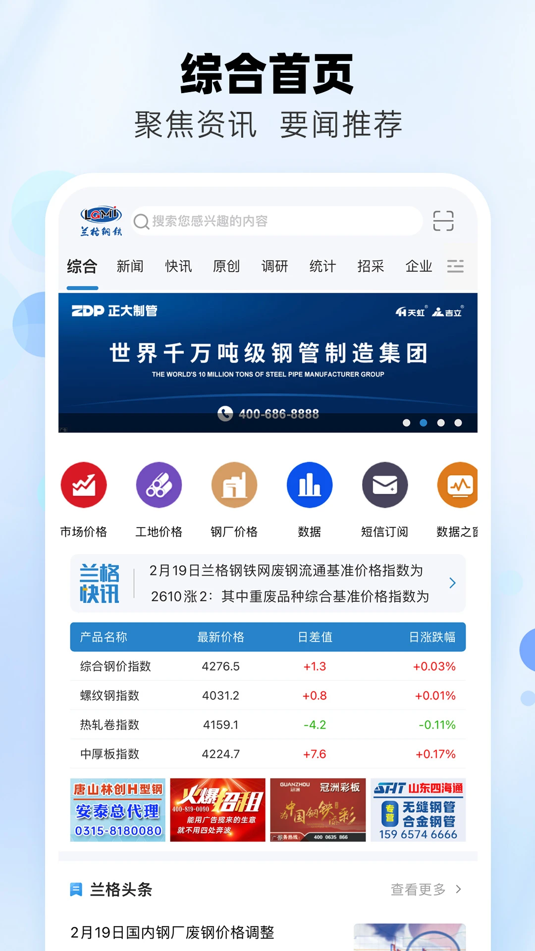 兰格钢铁APP是北京兰格云商科技有限公司旗下兰格钢铁网精心打造的专业钢铁行业服务平台。作为钢铁从业者的得力助手,该应用整合了宏观经济分析、市场动态追踪、实时价格查询、大数据分析、行业报告解读以及企业资源对接等核心功能。用户可根据个人需求定制内容订阅,获取精准的行业资讯。这款APP凭借其全面的数据覆盖和专业的分析工具,已成为钢铁产业链上下游企业决策的重要参考,帮助用户在激烈的市场竞争中把握先机。