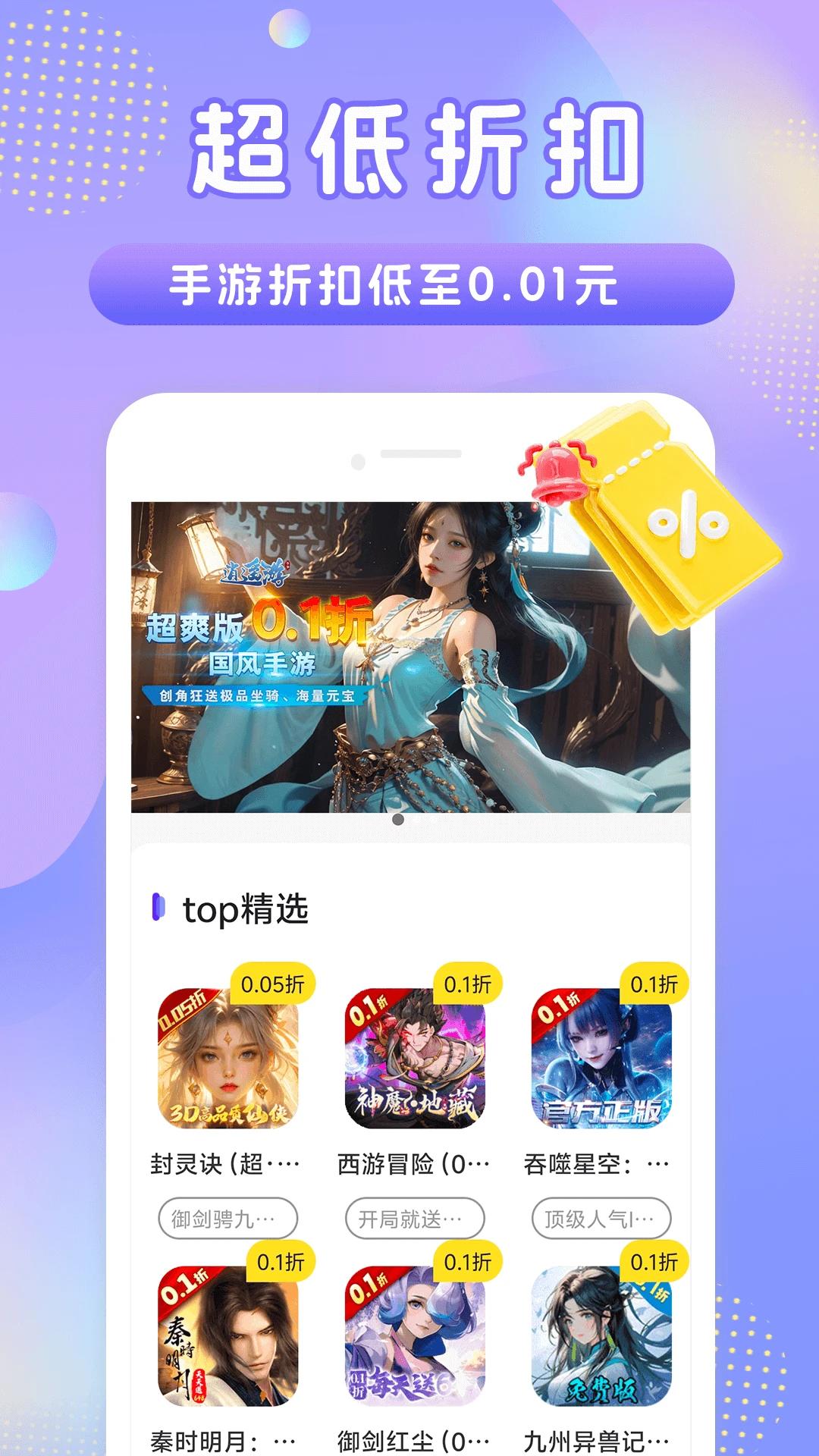 在这里,所有游戏道具统统0.1折起!无论是装备强化、角色培养还是时装购买,都能享受史无前例的超低折扣。平台还特别推出"无限0.1折"特权,让你在热门游戏中持续享受超值优惠。从《真红之刃》到《昆顿之杖》,从《口袋精灵》到《妖罗英雄传》,所有游戏内购统统打折,让你花小钱办大事!