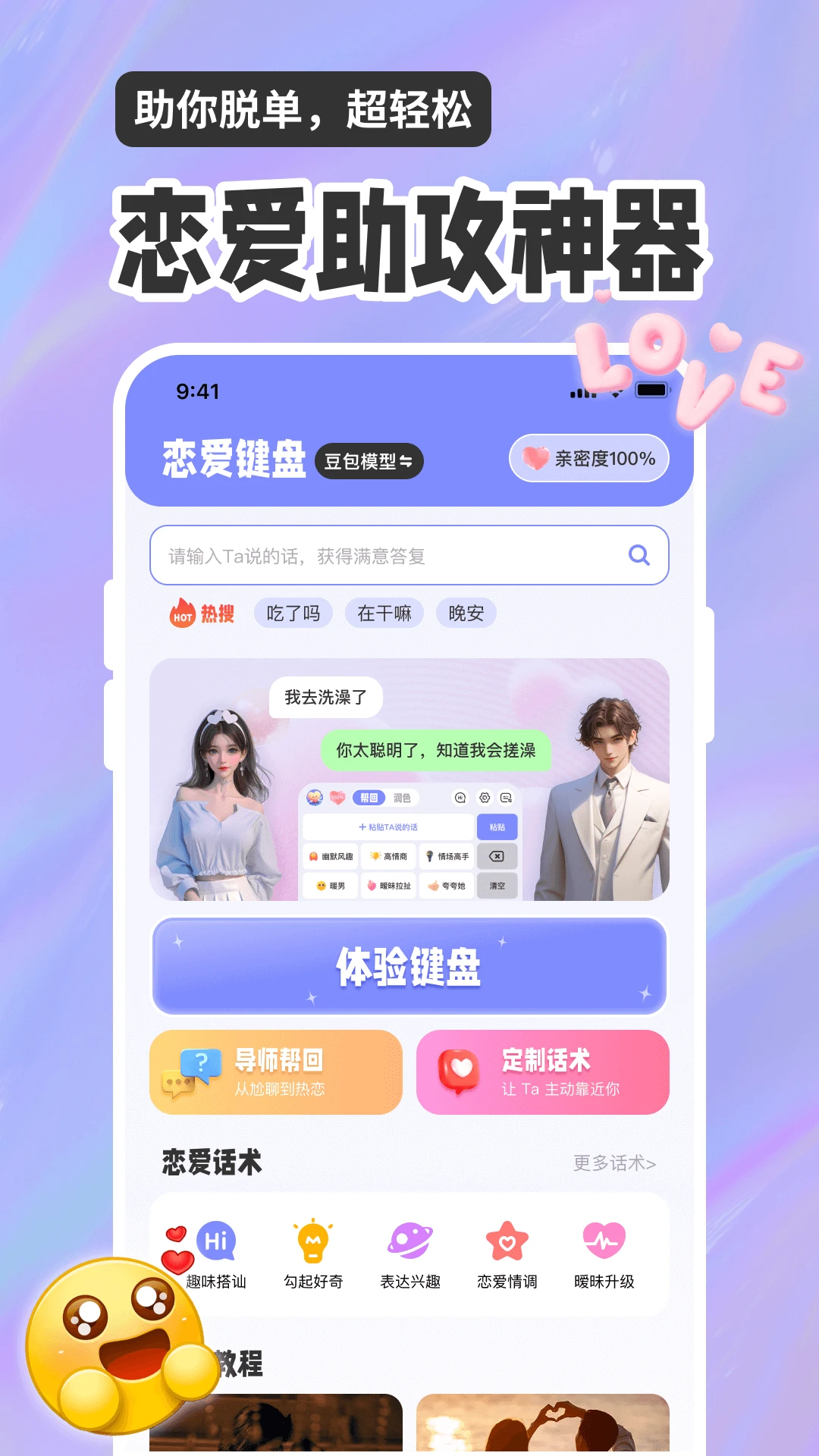 5000+恋爱教程,手把手教你怎么追到ta,学习正确的聊天思维,让你少走恋爱弯路。这些教程不仅教授具体的话术技巧,更重要的是培养用户的恋爱思维模式。通过系统学习,用户可以掌握情感交流的核心原理,在面对各种恋爱难题时都能游刃有余。