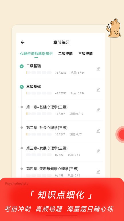 心理咨询师练题狗2023最新版拥有丰富的学习资源,包括知识点题库、历年真题精选、模拟试卷等。软件采用科学的学习方法,通过模拟考试、章节练习、错题巩固、笔记功能等模块,构建完整的学习闭环。