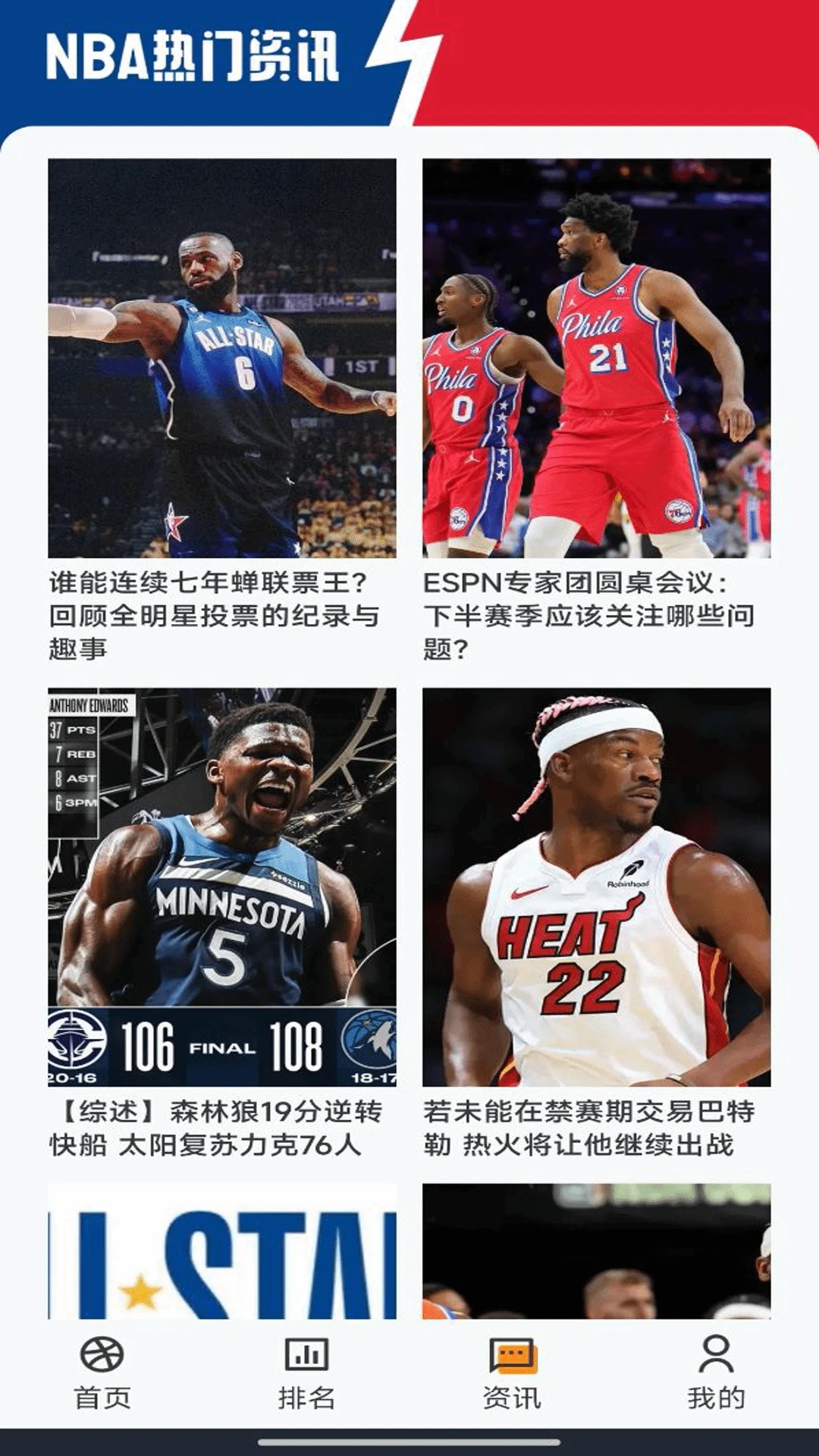 在核心功能方面,美职篮赛事提供了三大板块:NBA赛程板块以直观的方式呈现每日比赛安排,包括详细的开赛时间、对阵双方信息以及实时更新的比赛结果,让您不错过任何精彩对决;NBA排名板块实时更新各支球队的积分排名情况,完整展示东西部联盟的竞争格局,助您了解球队的最新战绩;NBA资讯板块则汇集了联盟最新动态、球员转会消息、专家分析等丰富内容,让您深入了解NBA的方方面面。