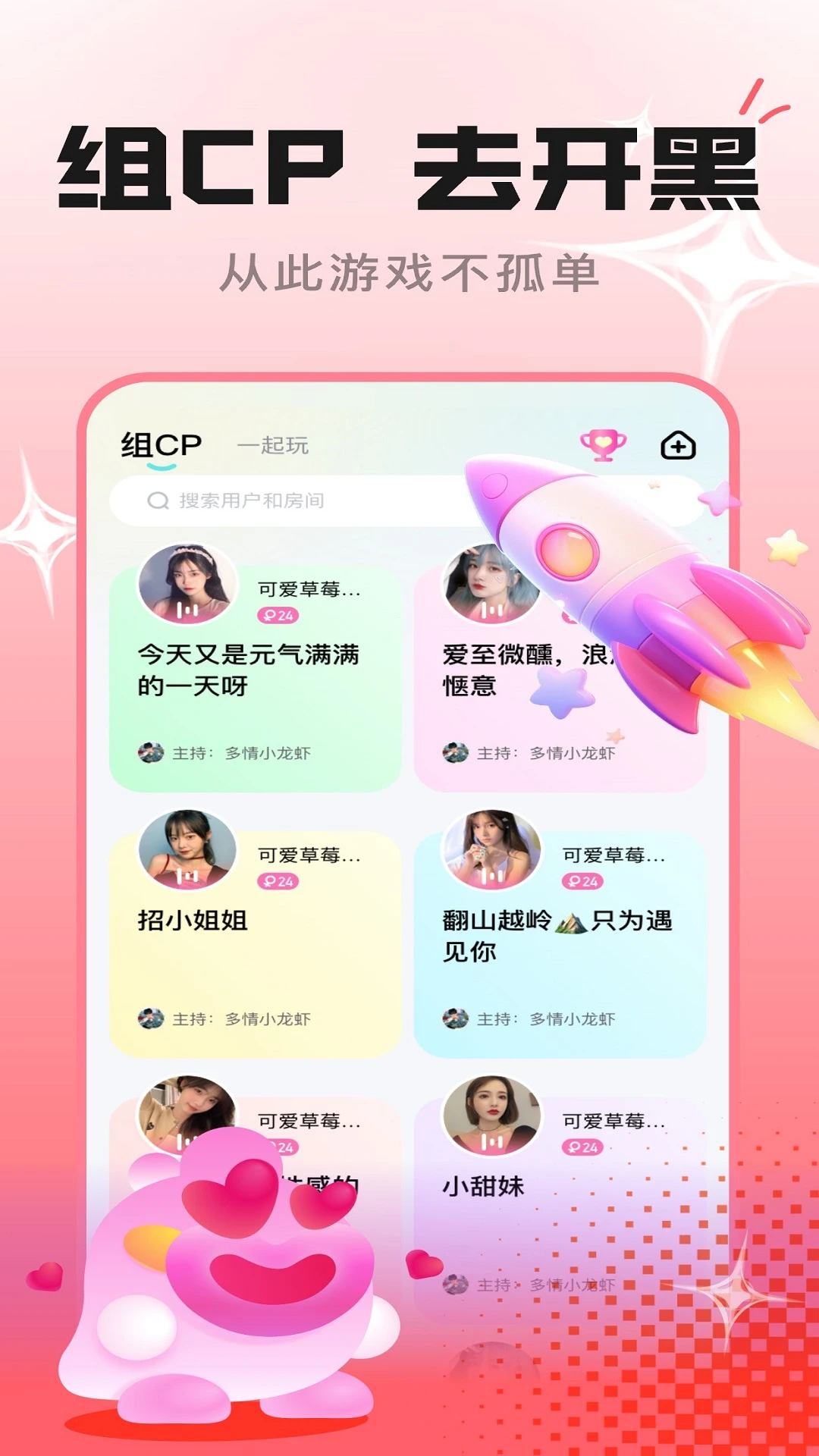 CP星球独创的游戏社交模式,将热门游戏与社交场景无缝衔接。在这里,你可以邀请匹配到的小伙伴一起开黑,在王者峡谷并肩作战,在和平精英里互相掩护。游戏中的默契配合会自然转化为社交话题,让友谊在共同战斗中快速升温。我们还定期举办情侣杯、好友赛等特色活动,为玩家创造更多互动机会。