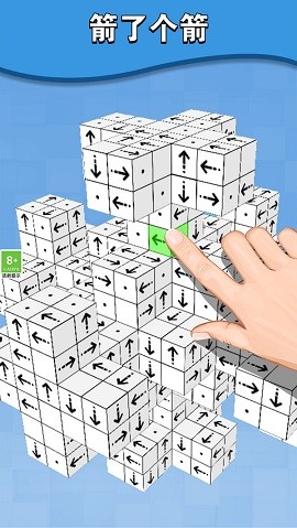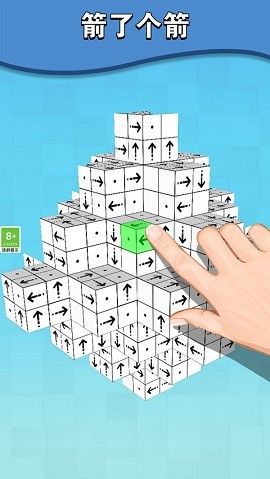 玩家需根据动态箭头的空间指向,在立体场景中精准匹配相同图案的方块进行连锁消除。游戏内置18种功能各异的道具系统,包括能改变重力方向的"空间扭曲器"、可同时消除整排方块的"激光射线"等黑科技装备。每个关卡设有动态计时条机制,剩余时间会转化为通关奖励倍数,高手可通过风险操作追求极限分数。