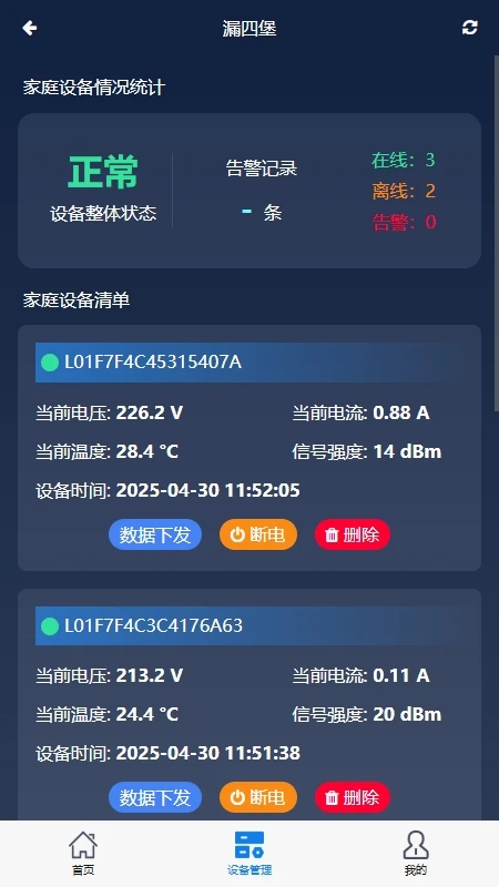 家庭版设备管理功能专为普通家庭用户设计,支持对家庭用电设备的远程监控和智能控制。用户可通过APP实时查看家中电器的工作状态、用电量及漏电情况,并设置自动断电保护功能。系统还会根据用电习惯生成节能建议,帮助用户优化用电方案,降低电费支出。