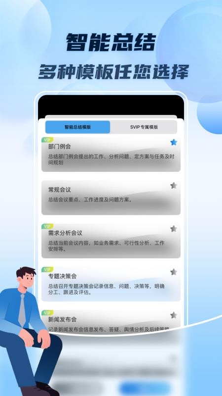 使用科会通非常简单直观。首先打开应用,选择新建会议,系统会自动开始录音并记录时间地点等基本信息。在会议进行过程中,用户可以随时添加文字笔记或标记重点内容。会议结束后,软件会自动处理录音文件,完成语音转写和内容分析。用户可以选择合适的模板,系统会按照模板结构整理会议内容,生成规范的会议记录。最后,用户可以对记录进行必要的编辑,添加附件或备注,然后保存或分享给相关人员。