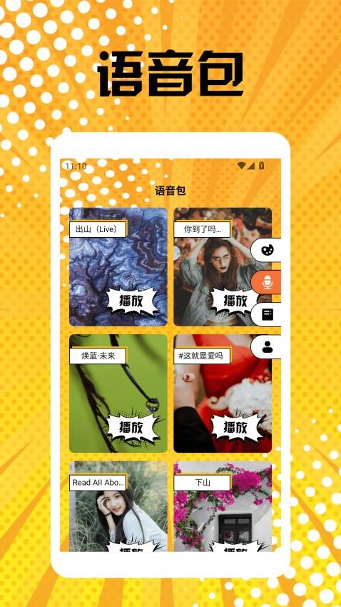 内置丰富动漫语音资源库,包含角色配音、环境音效等不同类型,用户可以为自己的漫画作品添加声音元素,创造更生动的多媒体漫画体验。语音包定期更新,保持内容新鲜度。