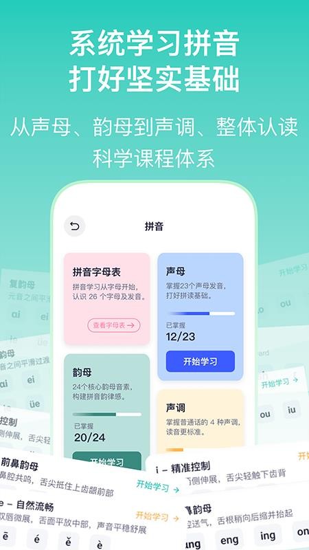 课程体系严格遵循语言学习规律,从音素到音节,从单字到词语,构建完整的知识框架。每个学习阶段都设有明确的目标和评估标准,确保学习效果可衡量。
