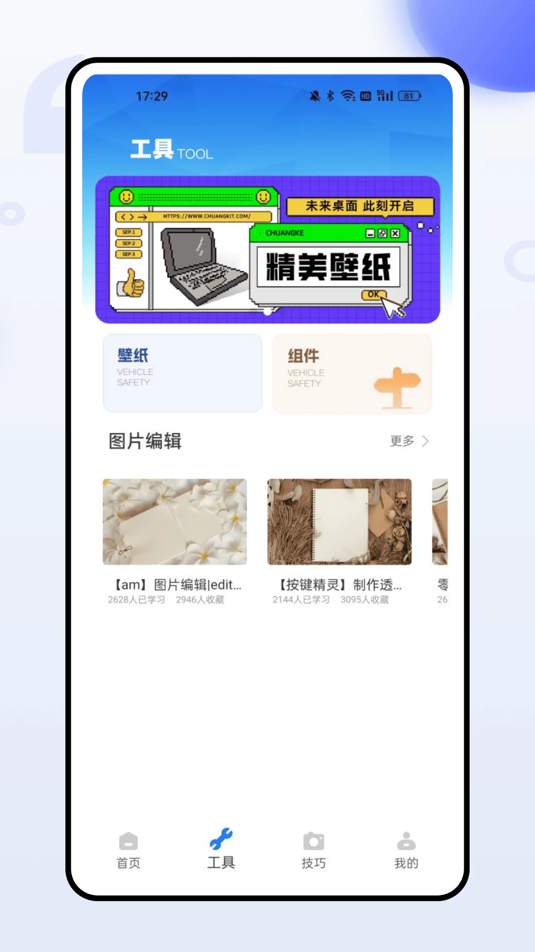 工具栏中的壁纸功能提供大量精美的摄影作品作为壁纸素材,所有图片都经过精心挑选,确保画质清晰、构图完美。用户可以根据自己的喜好选择不同风格的壁纸,让手机桌面也能展现摄影之美。软件还支持自动更换壁纸功能,每天都能欣赏到不同的精彩作品。