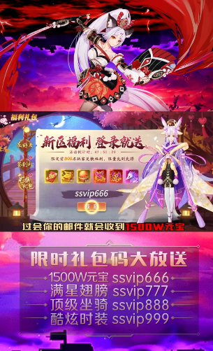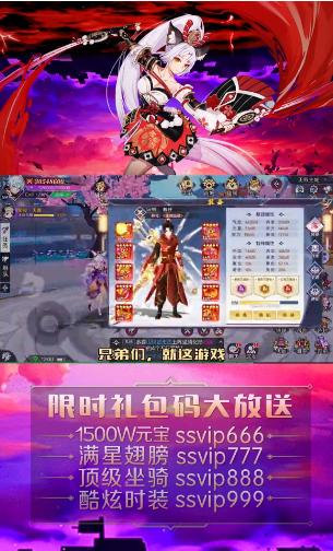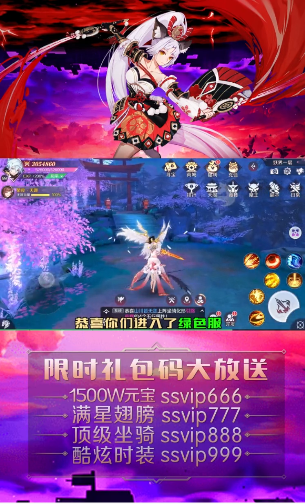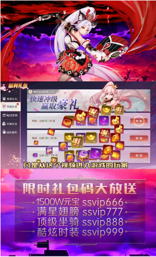游戏为所有玩家准备了海量福利:福利专区兑换码ssvip666、ssvip888可直接领取极品套装;首充仅需6元即可获得全身+13红装,装备还能直接兑换VIP特权;开局即送强力天姬,助力二次元冒险之旅。游戏爆率经过精心调整,让每位玩家都能轻松获取心仪装备。和风美术风格搭配天姬养成与竞技玩法,打造最具特色的国风手游体验。