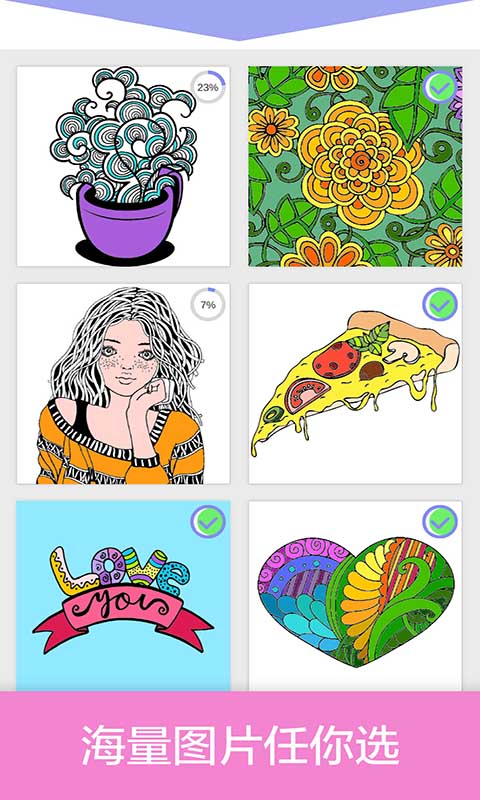 游戏拥有海量精美线稿,涵盖自然风景、可爱动物、奇幻插画、经典名画等多种主题,每一幅作品都经过精心设计,细节丰富且层次分明。你可以自由选择喜欢的图案,用指尖轻轻触碰屏幕,就能为黑白线稿注入绚丽的色彩。游戏提供超过1000种颜色的调色盘,支持渐变填充、区域上色等多种绘画方式,让你轻松实现专业级的上色效果。