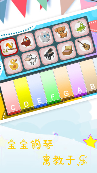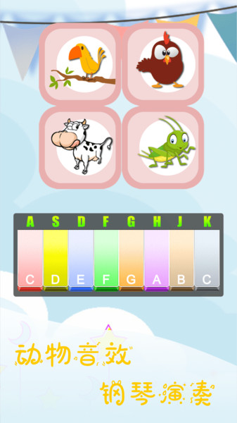 软件内置丰富的音效资源,钢琴可以模拟7种可爱的动物叫声和3种常见乐器音色,为孩子提供多样化的音乐体验。具体音效包括:清脆悦耳的鸟鸣声、活泼的鸡叫声、温柔的猫叫声、忠诚的狗吠声、夏夜般的蟋蟀声、欢快的鸭叫声、浑厚的牛叫声,以及专业的钢琴声、梦幻的音乐盒声和动听的吉他声。这些丰富的音效不仅能增加弹奏的趣味性,还能帮助孩子认识不同声音的特点,培养音乐感知能力。