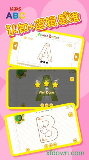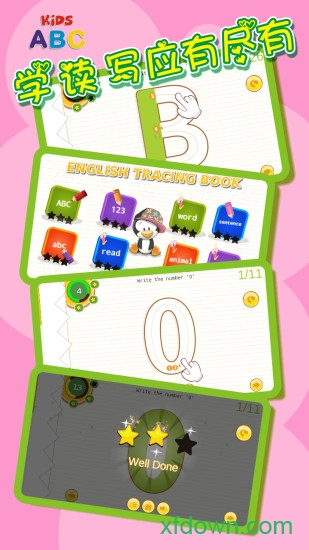 认识字母学习音标和单词:通过色彩鲜艳的图片和生动有趣的动画,吸引小朋友的注意力,帮助他们轻松记忆单词和音标发音。每个单词都配有标准发音示范和互动练习,确保学习效果。