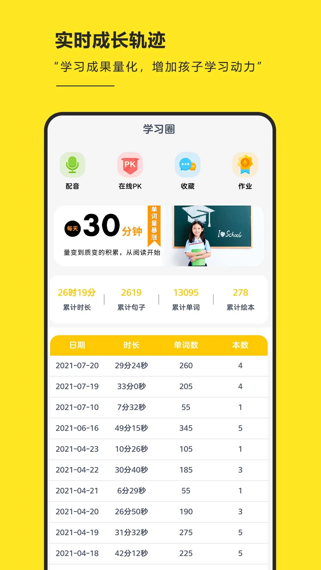 轻松伴读系统:完整记录孩子的学习历程,将阅读量、进步情况等学习成果以直观的数据图表呈现,让家长和孩子都能清晰地看到成长轨迹,增强学习动力。