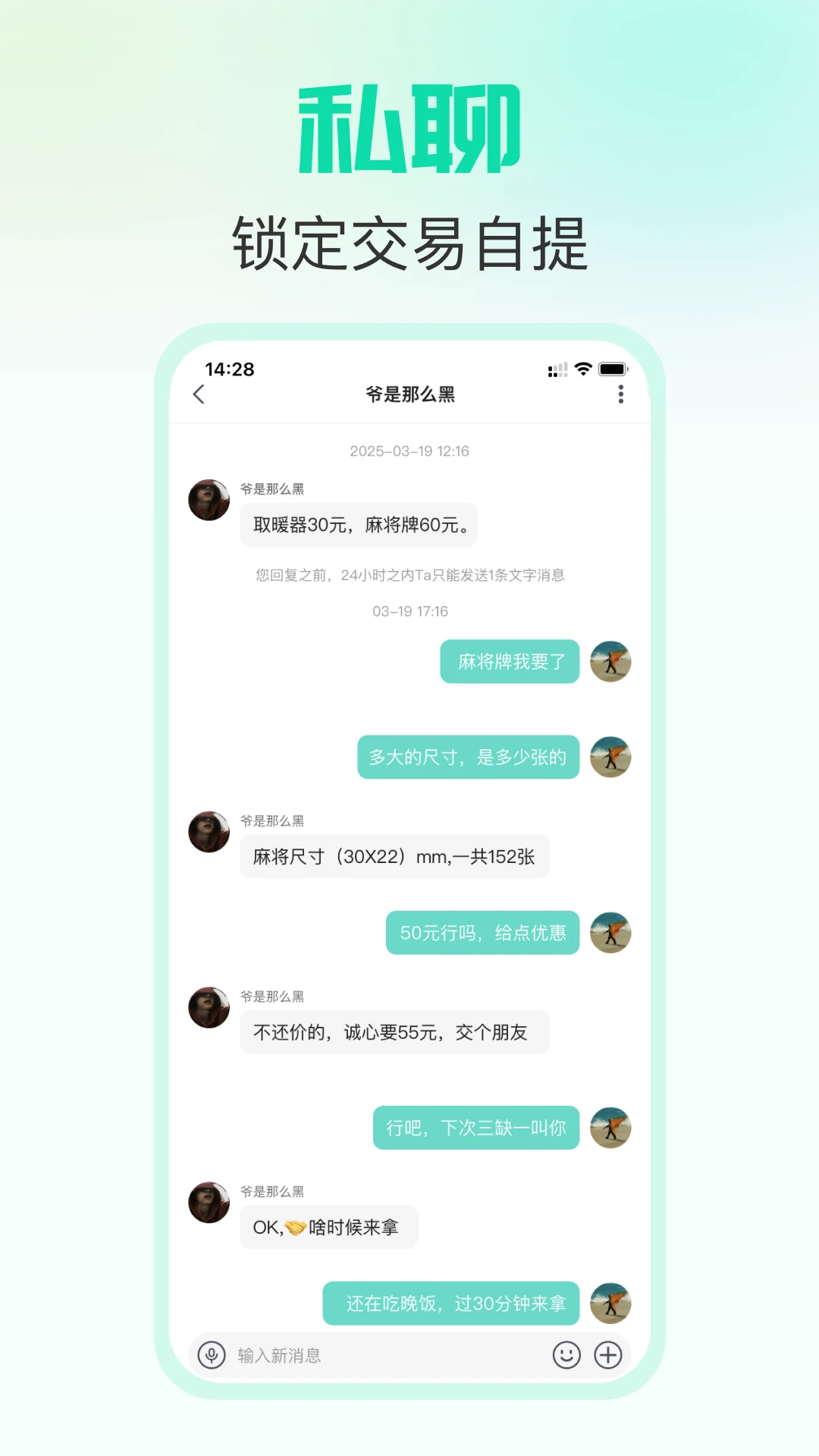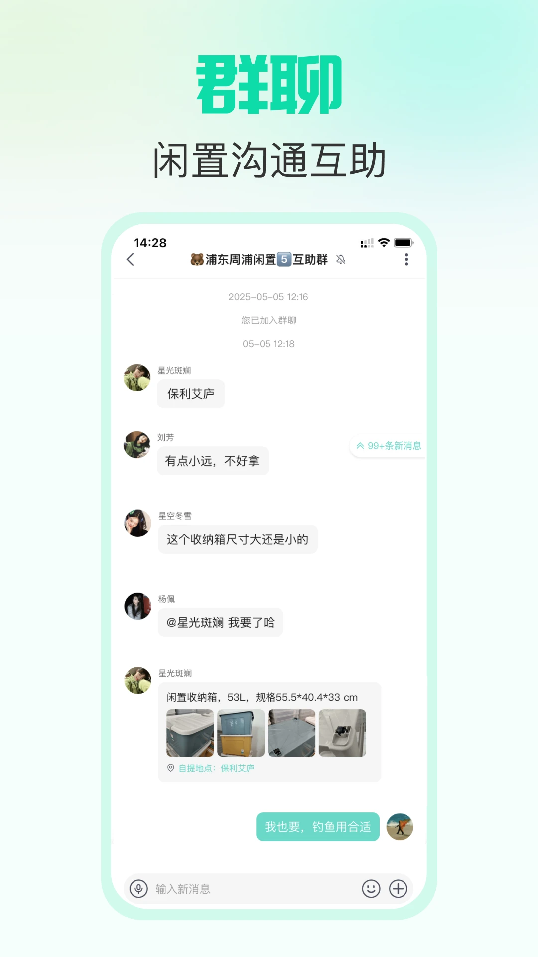 "比某鱼更适合本地人!群聊里直接砍价,当天就面交成功了!立等可取靠谱"——用户Aileen