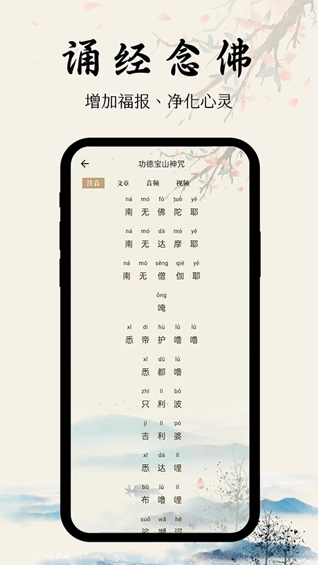 应用收录了海量经典佛经诵读音频,包括《金刚经》《心经》《大悲咒》等著名经文,由高僧大德和专业诵经师倾情演绎。您可以根据自己的修行需求选择不同版本和语种的诵读,感受原汁原味的佛教经典魅力。特别设计的定时播放功能,让您可以在睡前或晨起时自动播放佛经,营造宁静祥和的氛围。所有音频都经过精心制作,音质清晰纯净,带给您身临其境的聆听体验。