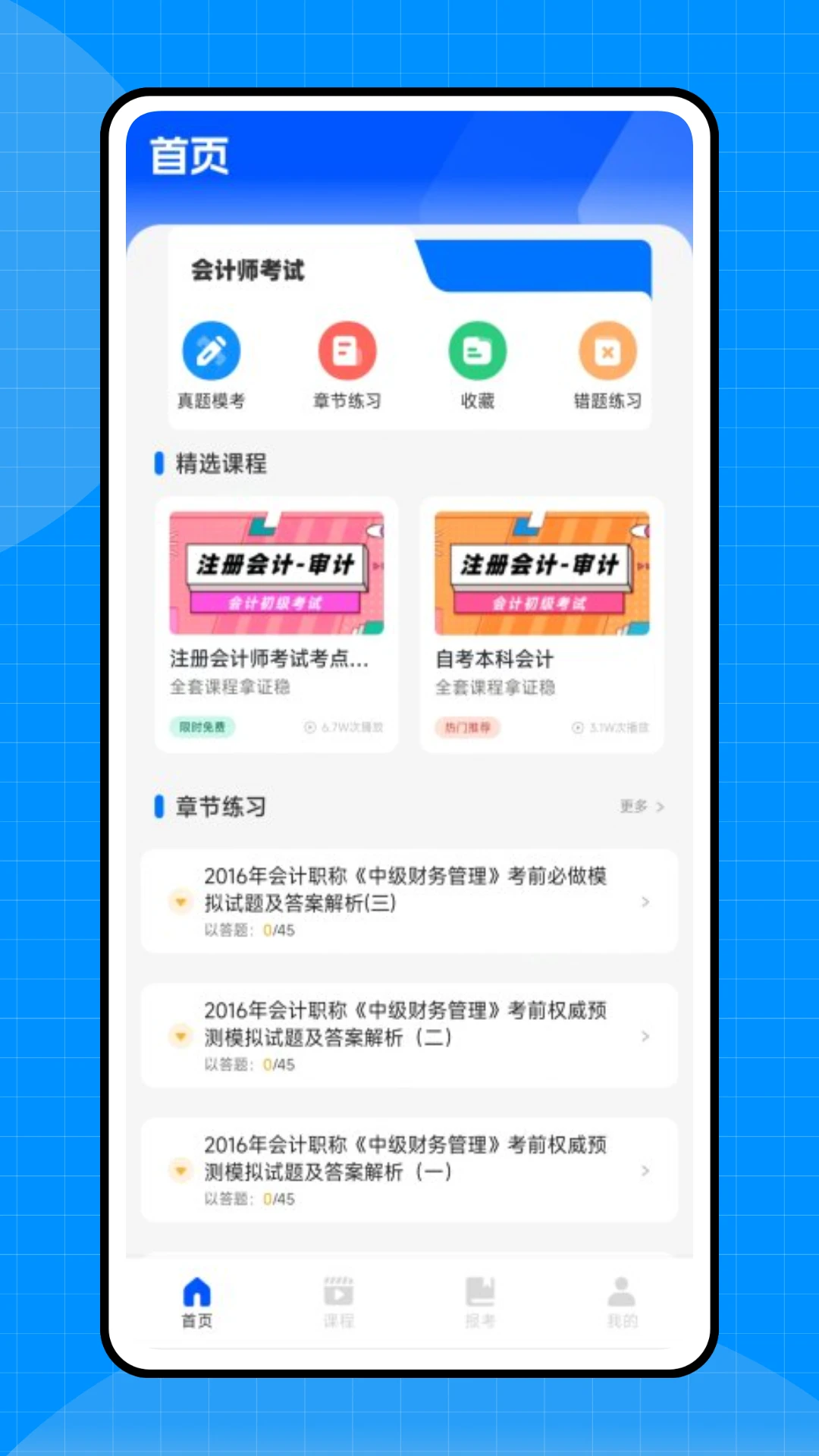 海量真题与模拟题,题型多样,涵盖单项选择题、多项选择题、判断题、不定项选择题等各种考试题型,能够满足学员的刷题需求,系统具备智能组卷功能,为学员量身定制个性化模拟试卷,精准查漏补缺。系统自动进行智能测评,即时生成详细的成绩分析报告,明确改进方向,系统自动记录错题,并按照知识点分类整理形成错题本。题库内容持续更新,紧跟考试动态变化,确保学员练习的都是最新最贴近考试的题目。智能算法会根据学员的答题情况自动调整题目难度,实现循序渐进的学习效果。