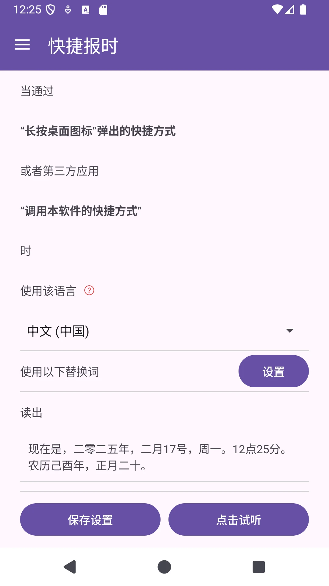 这款App最初的设计灵感来源于一个非常实用的生活场景——当你早上睡懒觉时,迷迷糊糊有点醒了,但又不想完全清醒,因为一睁眼可能就再也睡不着了。然而,你又很想知道现在几点了,于是便萌生了一个想法:如果能动一下手指就能一键报时,那该多方便啊!正是基于这个需求,我们开发了这款App,让你无需睁眼或拿起手机,只需轻轻一点,就能听到当前的时间播报。