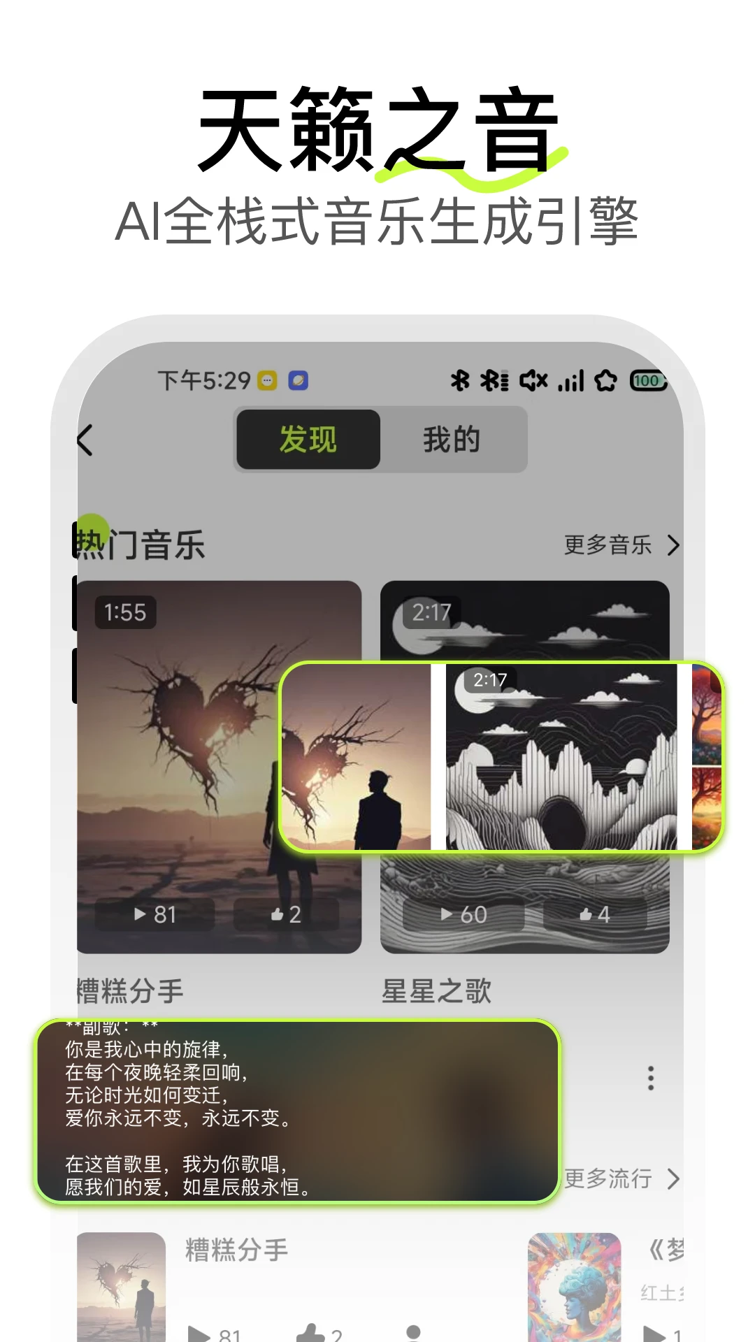 -音乐生成:创新的AI作曲系统,可以一键生成完整的音乐作品,包括歌词创作、旋律编配,还能根据需求定制纯音乐作品。