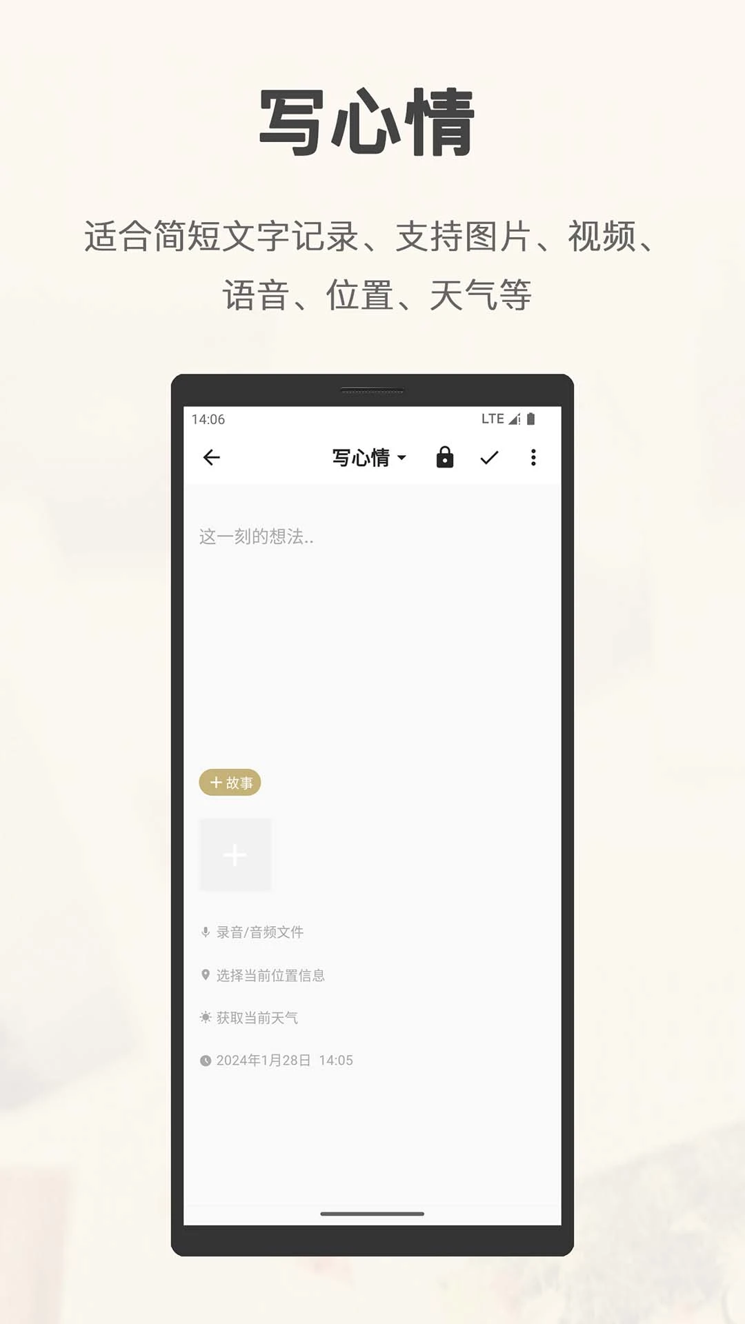 《旧时光》不仅仅是一款简单的日记本或记事本,它更是您生活中的贴心伴侣,能够完整记录您生命中的每一个珍贵瞬间。无论是文字、照片、视频还是音频,都能在这里找到它们的归宿,共同编织成属于您的独特故事。
