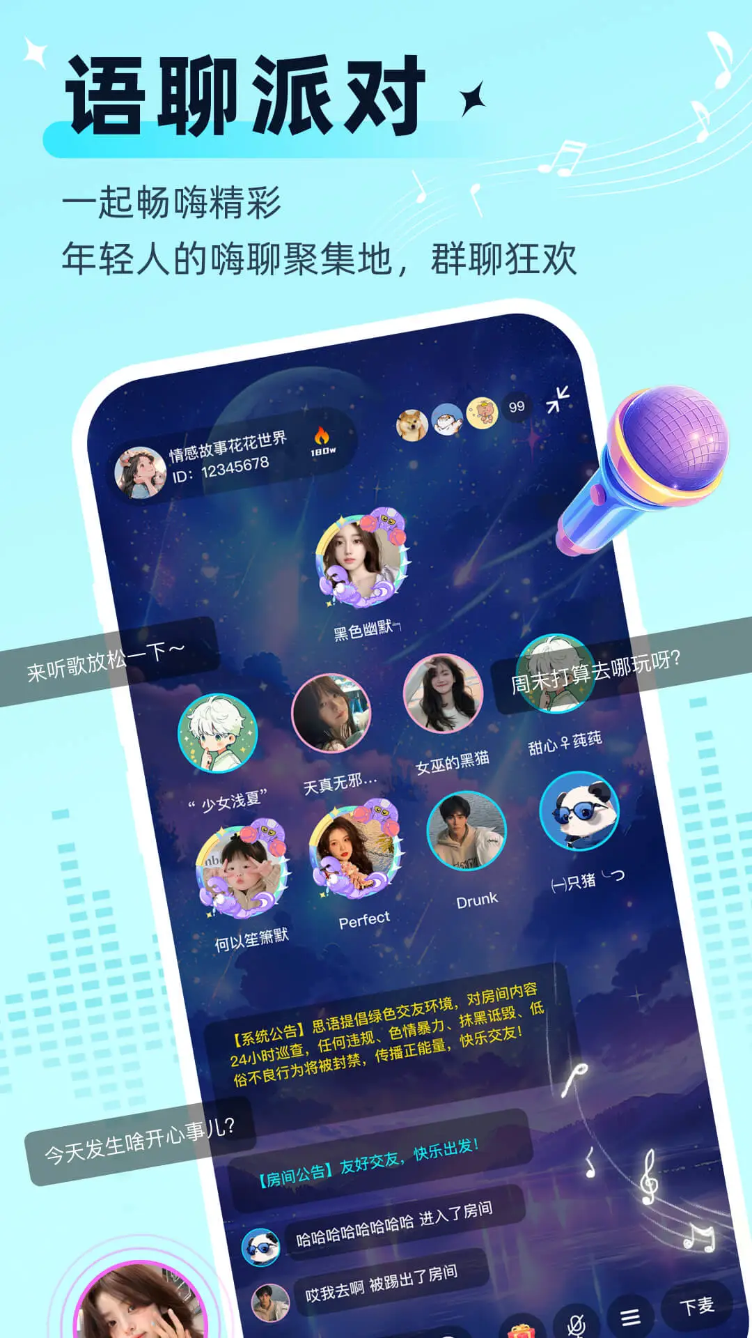 【语聊派对】在语音房间与好友们一起嗨玩,多种主题派对任你选择,告别寂寞,享受欢乐时光!