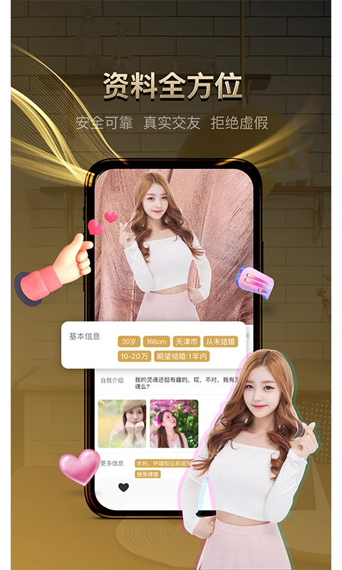 牵手记婚恋是一款专注于真实婚恋交友的移动应用,致力于帮助单身人士找到理想的结婚对象。在这个快节奏的时代,许多人因工作繁忙或社交圈有限而难以遇到合适的伴侣,牵手记婚恋通过智能匹配和严格审核机制,为用户打造一个安全、高效的婚恋平台。我们理解您对真诚交友的渴望,因此采用多重保障措施,确保每位用户都能在这里找到志同道合的另一半,开启幸福人生新篇章。