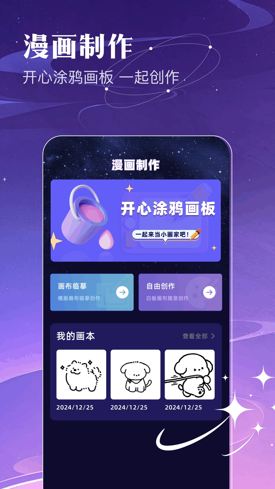 如果你有创作梦想,"漫画制作"功能将是你最得力的助手。这里提供了专业的涂鸦画板,既可以临摹学习,也能自由创作。简单易用的工具让你轻松释放创意,独特的画本功能还能记录你的每一次灵感闪现,见证你的成长轨迹。我们还定期举办创作比赛,让更多读者欣赏到你的作品。
