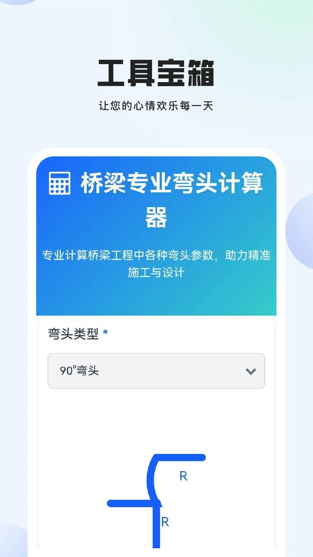 桥梁专业弯头计算器是一款专为桥梁工程领域打造的数字化工具,致力于解决弯头参数计算的复杂问题。它通过智能化的算法和简洁的操作界面,帮助工程师快速完成各类弯头尺寸、角度及受力分析等关键数据的计算。无论是桥梁设计阶段的方案优化,还是施工过程中的现场调整,这款工具都能显著提升工作效率,减少人为误差。其精准的计算能力和实用性,使其成为桥梁工程师不可或缺的助手,让繁琐的手动计算成为过去。