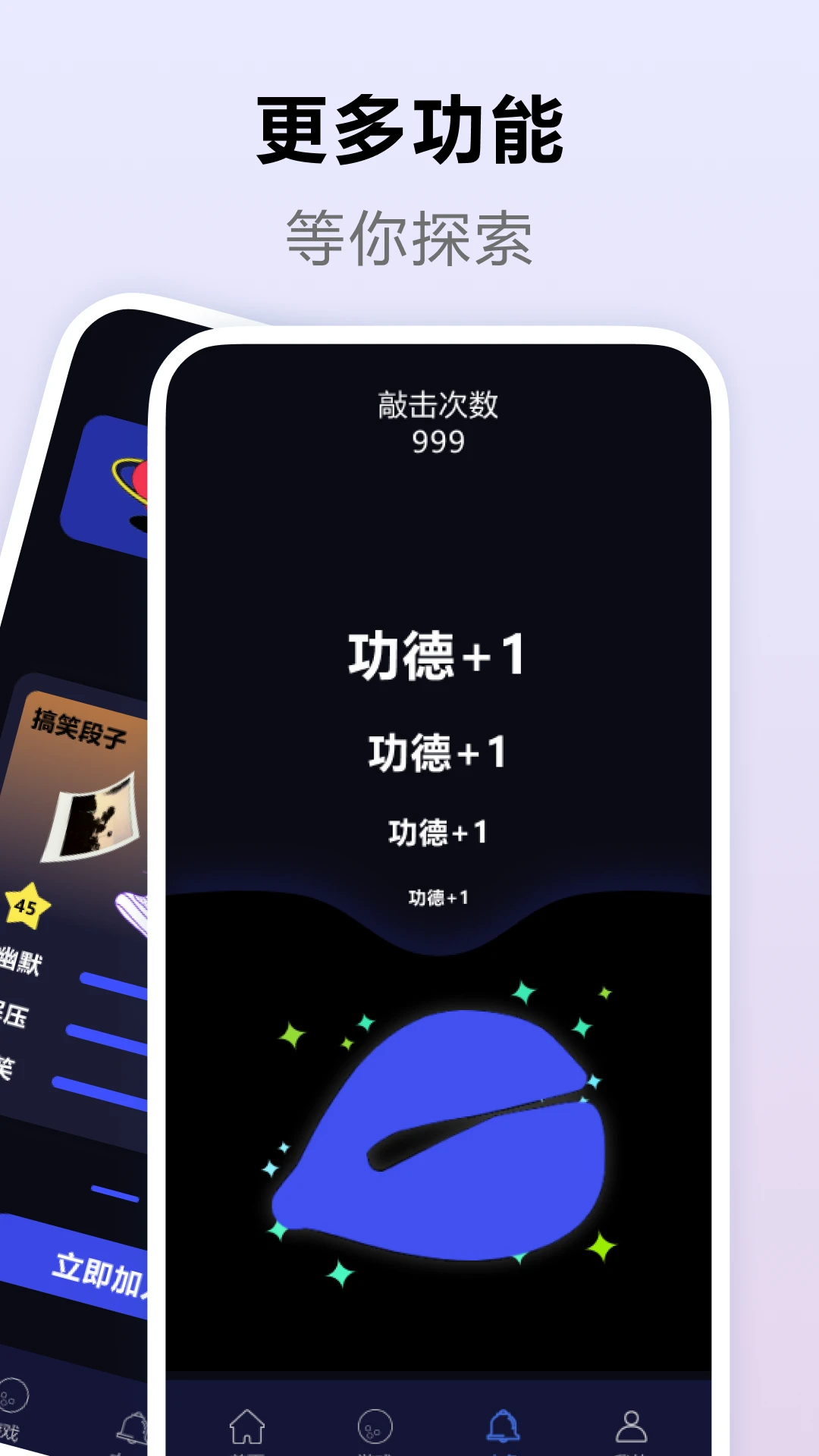 欢迎来到快乐解压世界,这是一款专为现代人设计的放松解压软件。在这里,您可以聆听舒缓的木鱼声,让忙碌的心灵得到片刻宁静;还能享受各种幽默段子和趣味内容,为生活增添一抹轻松色彩。无论您是想在工作间隙放松心情,还是在睡前寻找片刻安宁,快乐解压世界都能满足您的需求。我们精心打造了多样化的内容,让每一位用户都能找到属于自己的解压方式。现在就下载体验,开启您的快乐之旅吧!