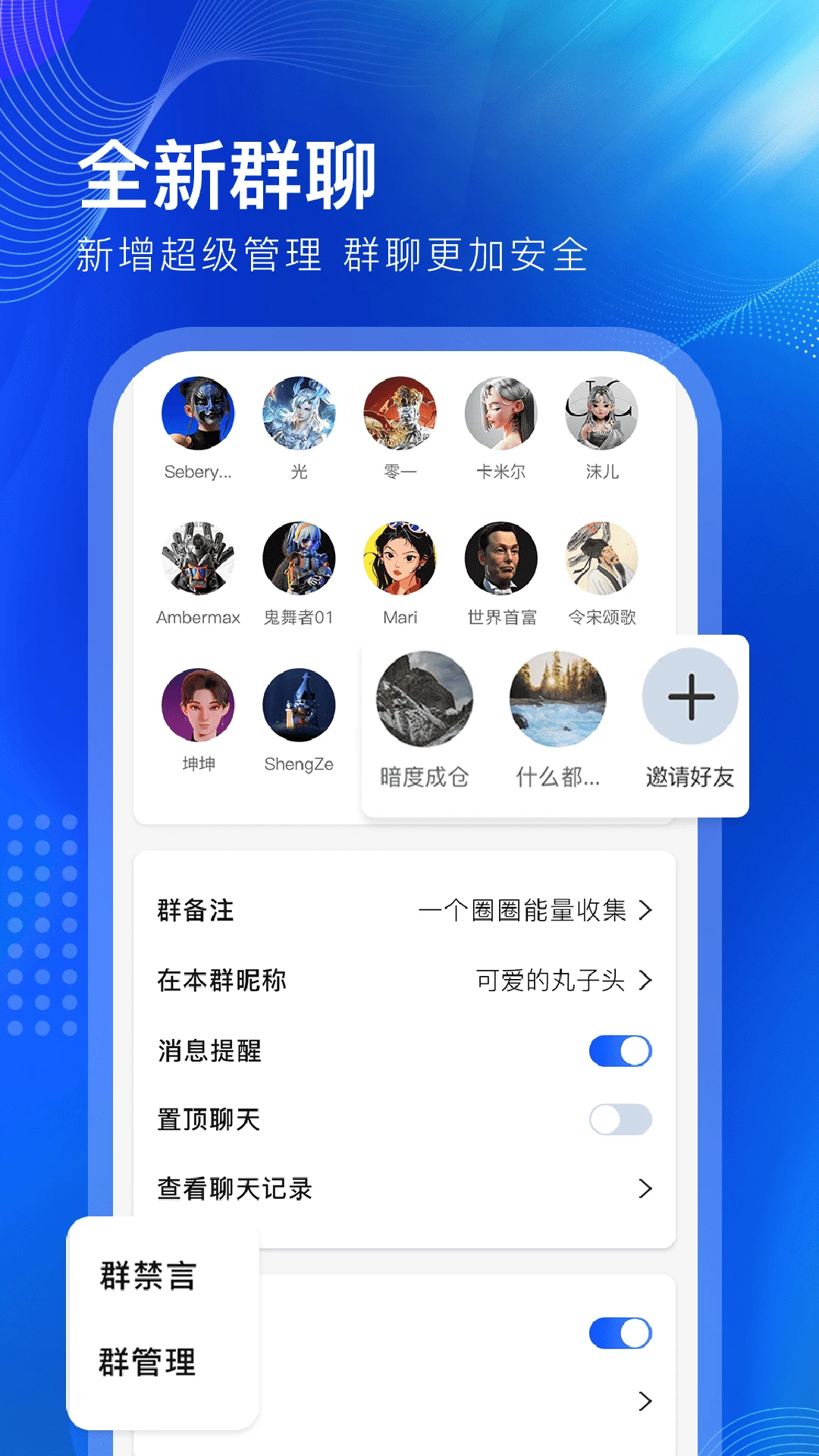 支持创建和管理群聊,方便用户与家人、朋友或同事保持联系。同时,平台提供丰富的兴趣社群,用户可以根据自己的爱好加入不同主题的社区,结识志同道合的朋友。社群内还支持话题讨论、活动组织等功能,让互动更加丰富多彩。