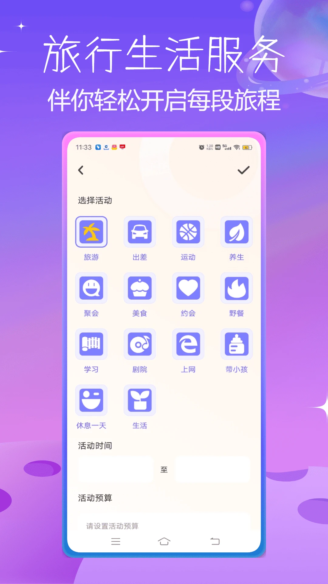 就是这里,一款专为旅行爱好者打造的智能生活服务APP,将创新科技与旅行场景完美结合,为你带来前所未有的便捷旅行体验。这款APP通过深度整合各类实用功能,从行程规划到旅途记录,从天气查询到美食探索,全方位满足你的旅行需求,让每一次出行都充满惊喜与乐趣。