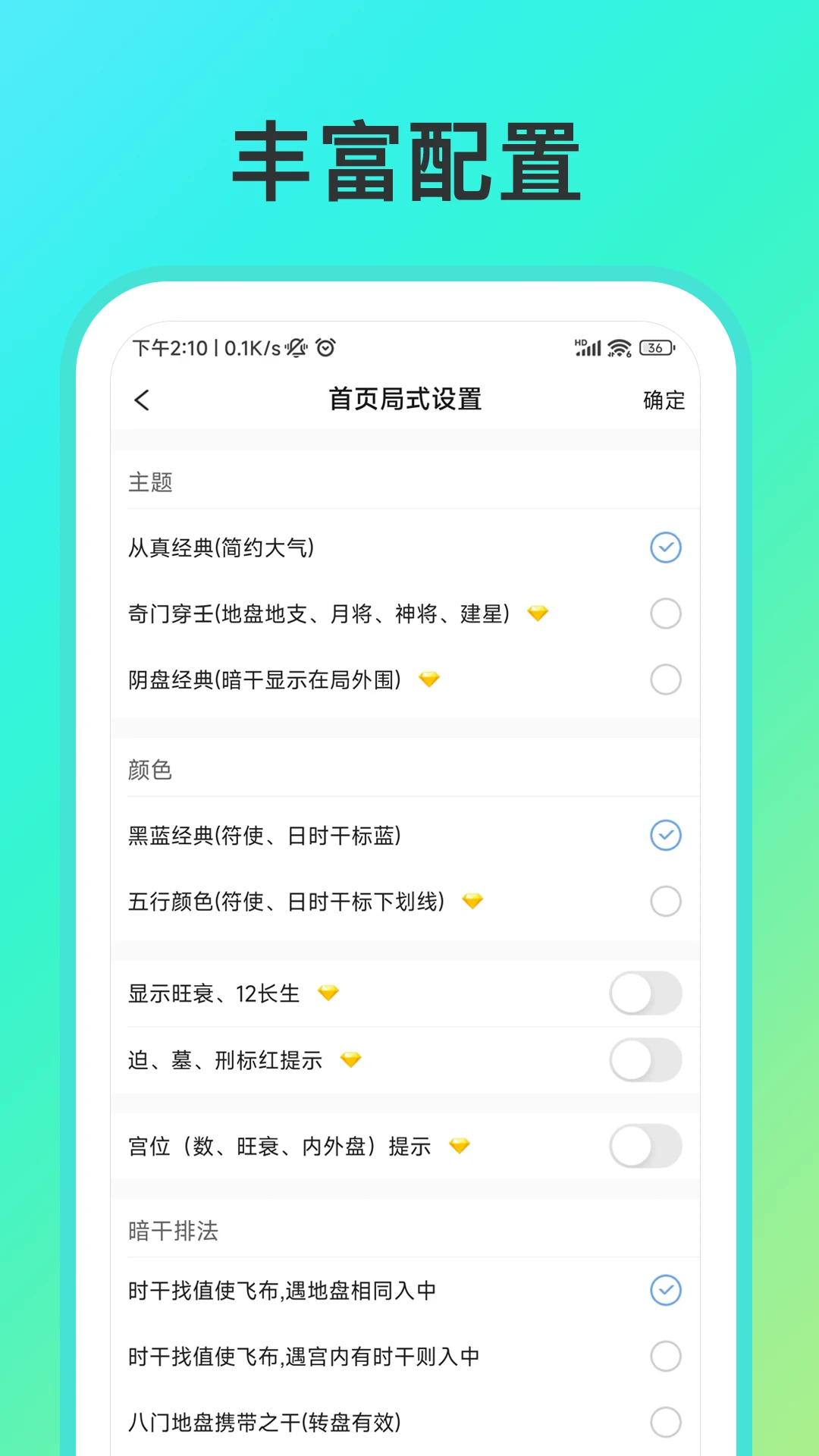 提供二十余种视觉主题选择,支持自定义宫位颜色与符号样式。专业设置区包含七种暗干排法、五种寄宫规则调整,四害标红支持阈值调节。独创的多局对比功能,可并列显示不同起局法的排盘结果,方便技法验证与学术研究。