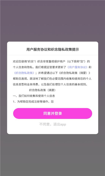 接下来我们会看到用户协议提示,这里我们只需要选择同意并登录即可,选择不同意则会退出。建议仔细阅读协议内容,了解平台的数据使用政策和用户权益保障措施。