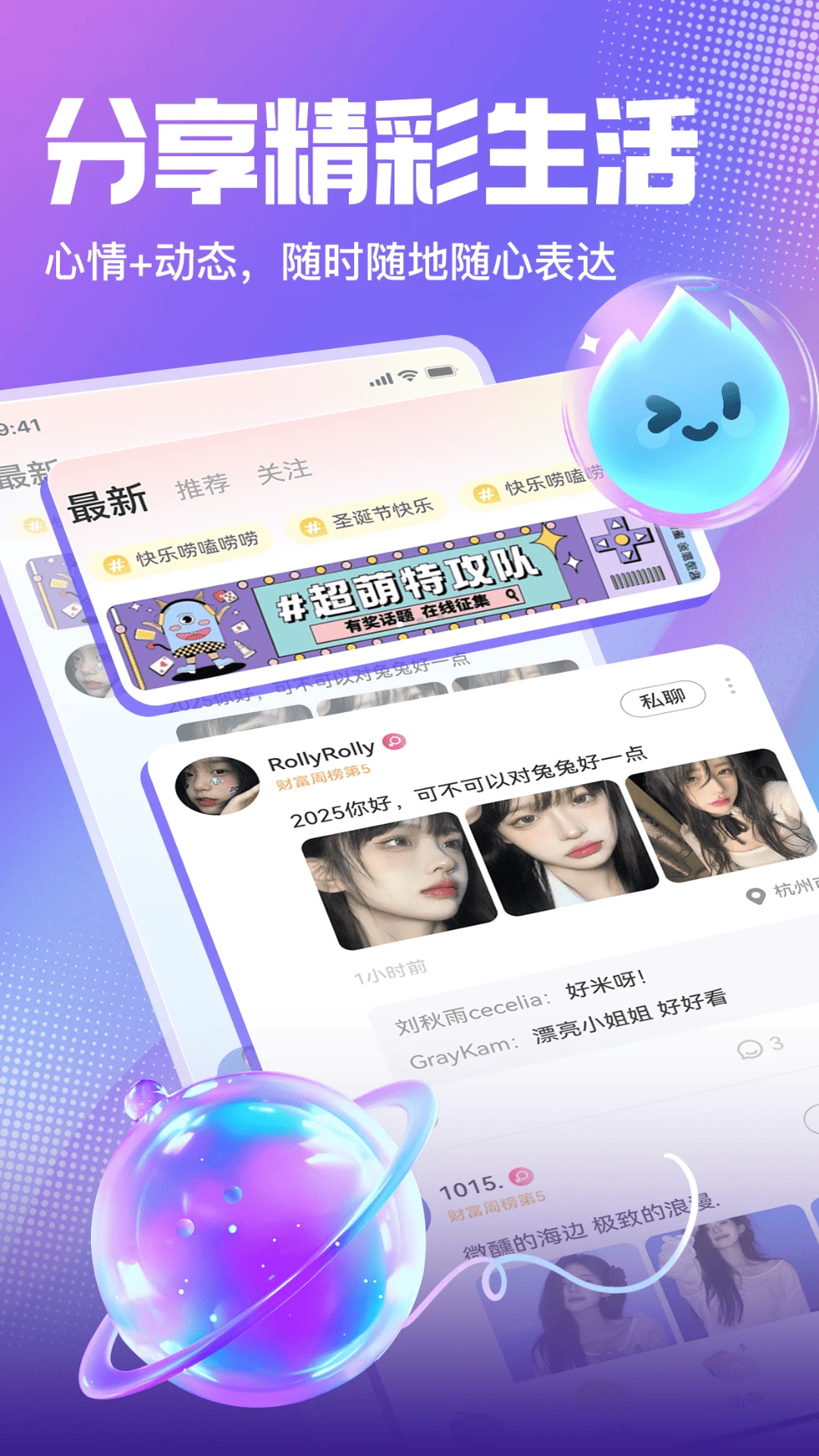 今天的烦心事、下班路上的小发现、突然想唱两句歌……长按录音键,3秒发一条"语音动态"!不看头像不看资料,光凭声音决定要不要连麦,下一秒可能就偶遇电台男神级音色!在这里,每条语音都像是一封声音明信片,记录着你最真实的生活片段。系统还会根据你的声音特质,智能匹配可能合拍的小伙伴,让每一次发声都充满期待。无论是分享一首歌、一段心情,还是即兴讲个冷笑话,都能收获最真诚的声音回应。