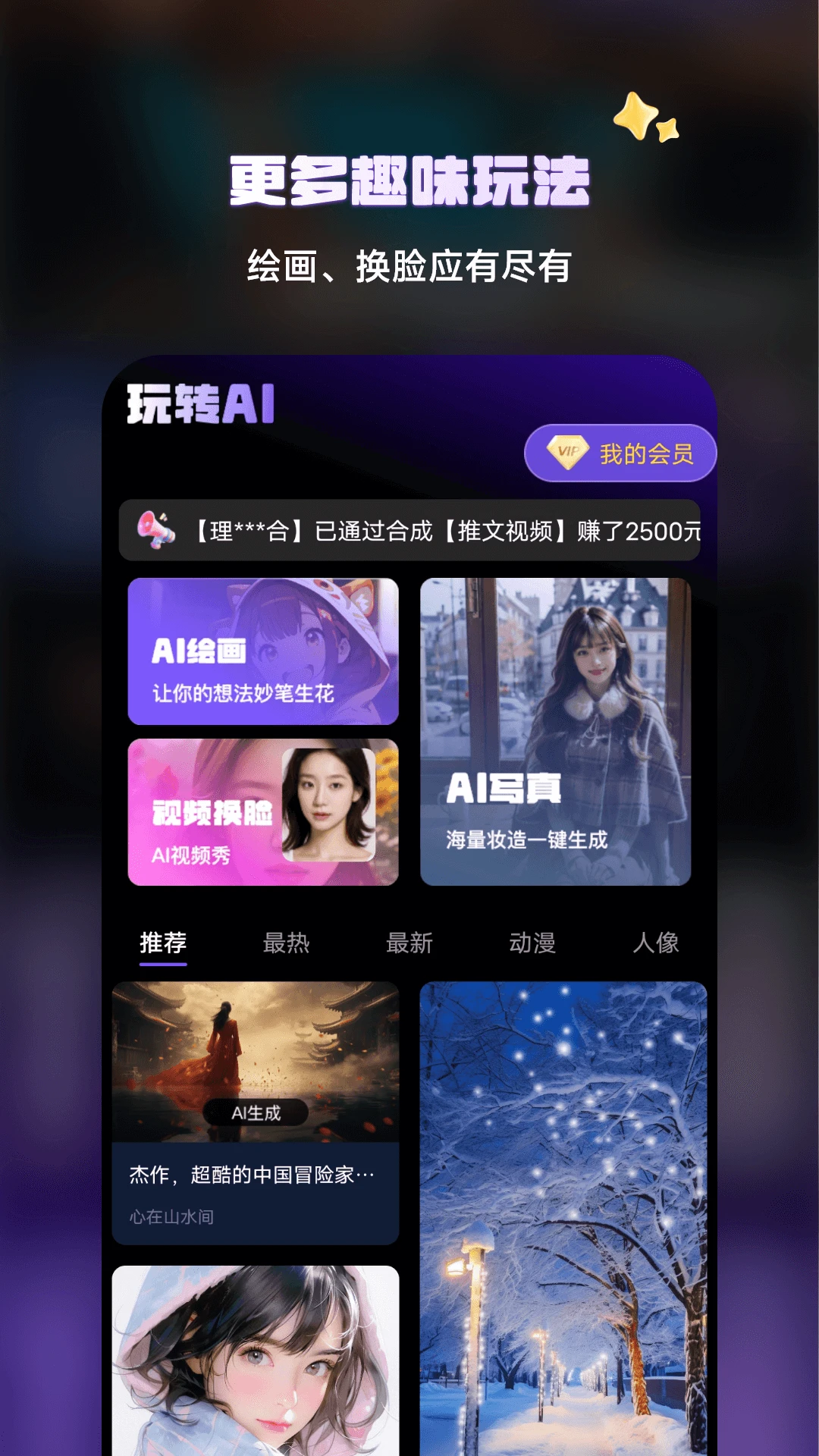这是一款集创意写作、AI绘画和智能换脸于一体的多功能APP,为用户带来前所未有的数字创作体验。通过先进的AI技术,用户可以轻松实现文字创作、图像生成和趣味换脸等多样化功能。无论是想创作独特的小说、诗歌,还是需要生成个性化的学习计划,这款APP都能满足您的需求。其AI绘画功能可以将文字描述转化为精美画作,而一键换脸则能为照片增添趣味性。操作简单直观,即使是技术小白也能快速上手,让每个人都能享受科技带来的创作乐趣。