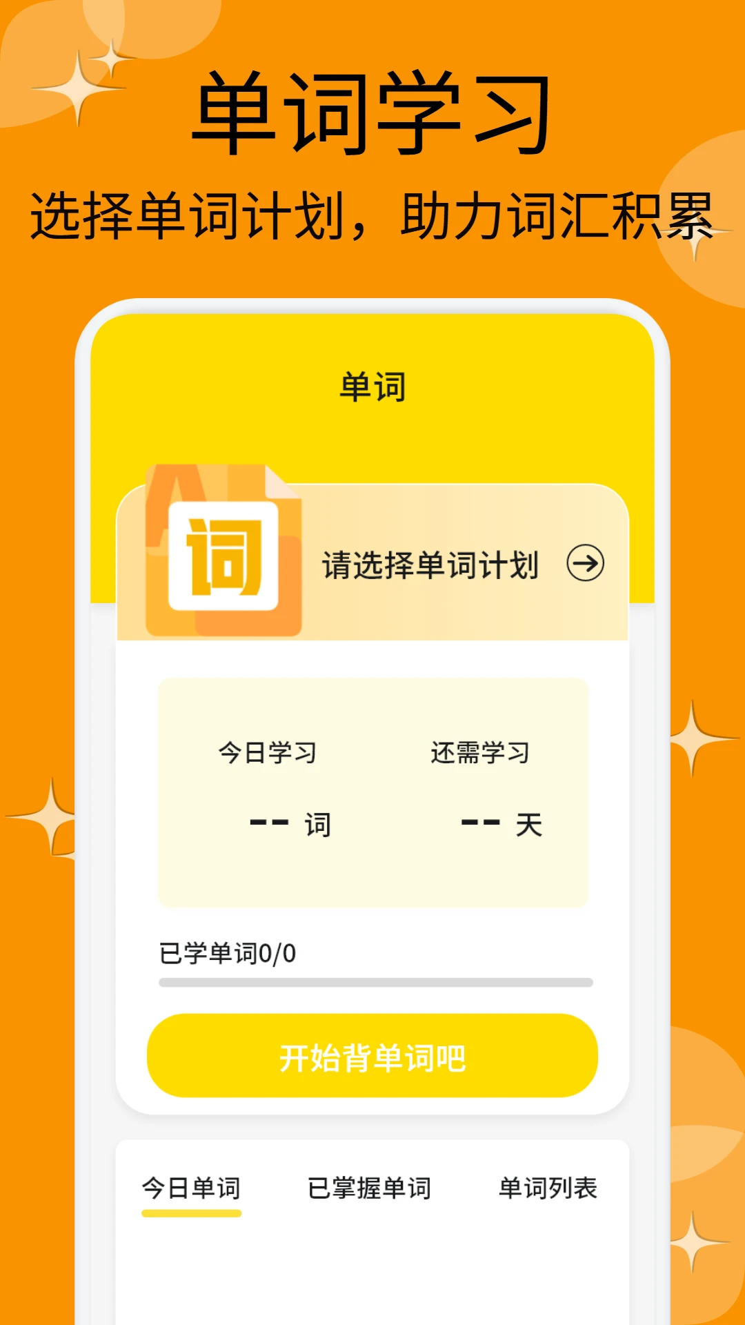 你的英语学习全能伙伴!无论是想提升词汇量,还是打磨口语、听力、阅读能力,这里都有专属方案。单词学习可定制计划,精准追踪进度;口语学习社覆盖实用场景,科学训练助力表达;听力专项提供丰富素材,沉浸式提升听力理解;更有计时功能辅助专注学习。从基础积累到专项提升,多维度满足英语学习需求,让你轻松开启高效学习之旅,在英语进阶路上稳步前行~