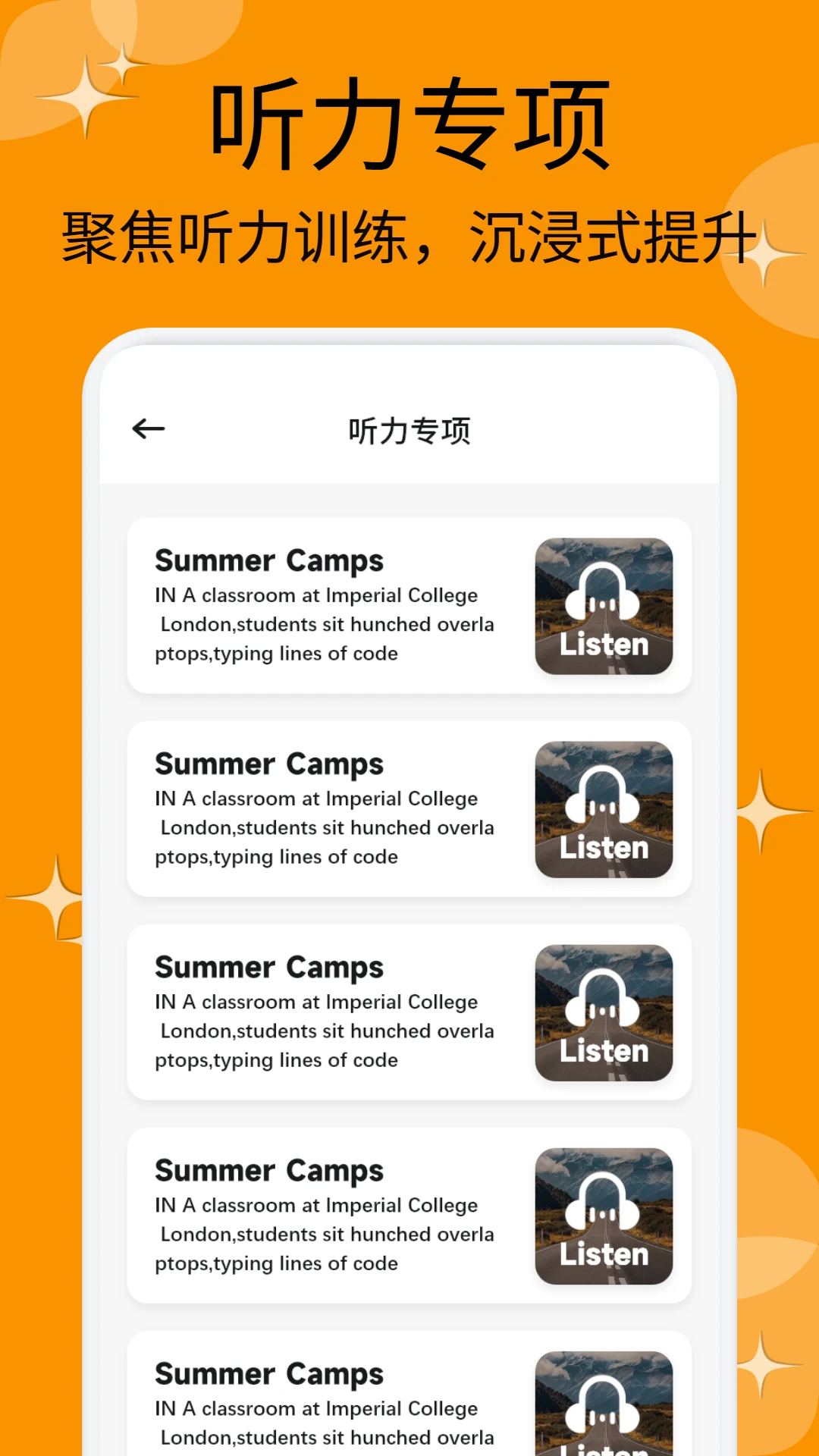 全面覆盖英语学习的四大核心能力:词汇、口语、听力、阅读。