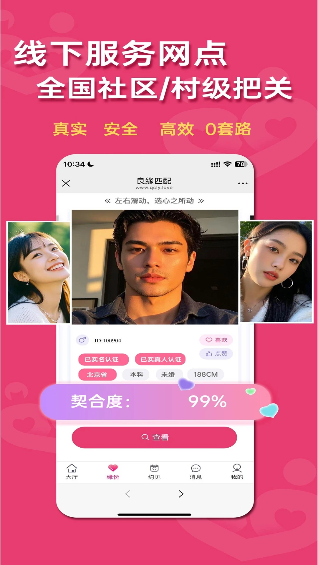 牵诚良缘是一款专注于婚恋交友与情感服务的公益平台,致力于为单身人士提供安全、可靠的社交环境。平台以婚恋为核心,融合交友联谊、暖心互动和婚育文化宣传等功能,帮助用户建立真诚的情感连接。通过实名认证和严格审核机制,牵诚良缘确保用户信息的真实性,同时倡导健康婚恋观,助力幸福婚姻的缔造。无论是寻找终身伴侣还是拓展社交圈,这里都能满足不同用户的需求。