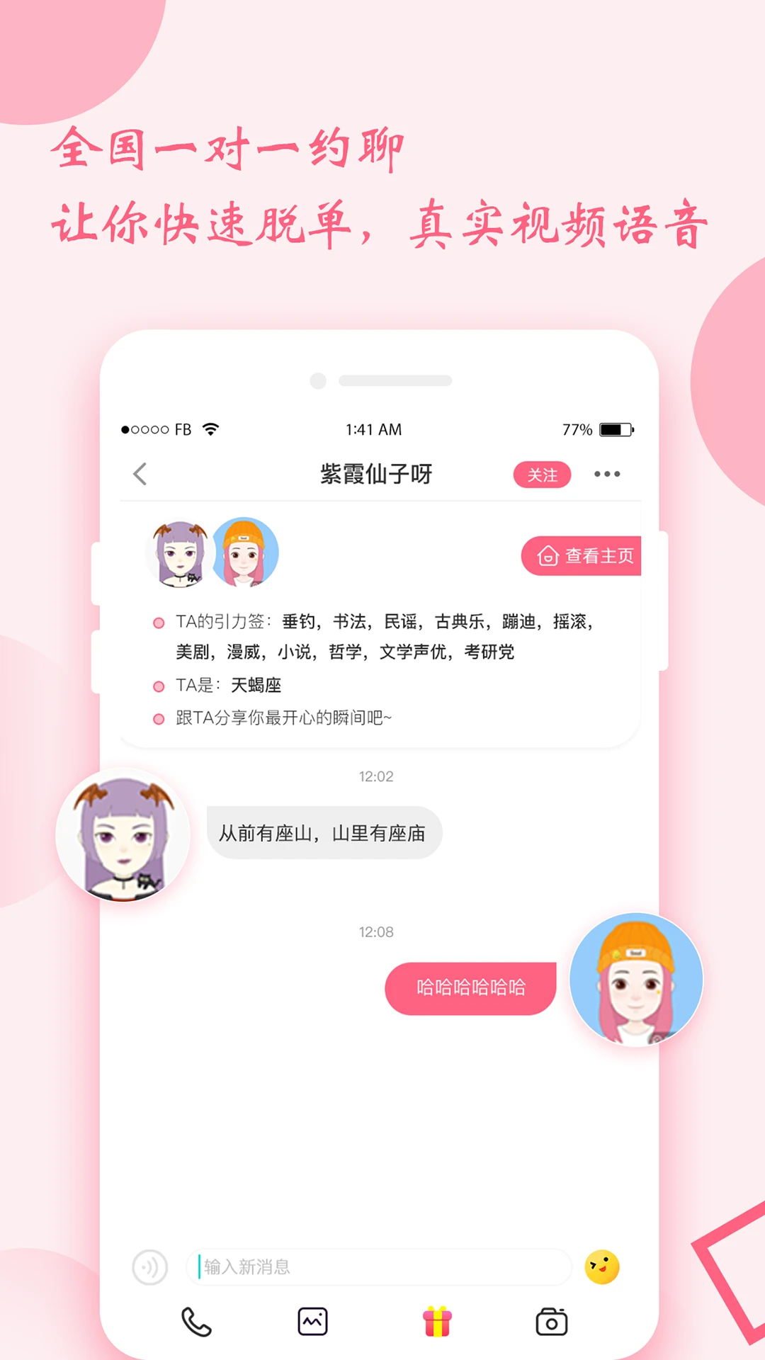 时遇是一款专注于真实交友的社交平台,致力于帮助用户快速找到心仪的另一半、知心朋友或红颜知己。通过文字、语音、视频等多种互动方式,时遇让用户与附近的异性轻松聊天,告别孤独与单身。平台采用严格的真人实名认证机制,确保每位用户都是真实在线的个体,避免机器人或僵尸账号的干扰。智能算法精准匹配,推荐实时在线的异性用户,让每一次相遇都充满惊喜与可能。无论是寻找爱情、友情还是倾诉对象,时遇都能成为您最贴心的伙伴。