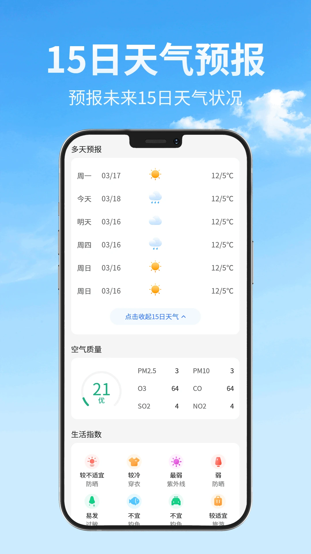 支持15日天气预报,帮助用户提前规划出行和活动安排。