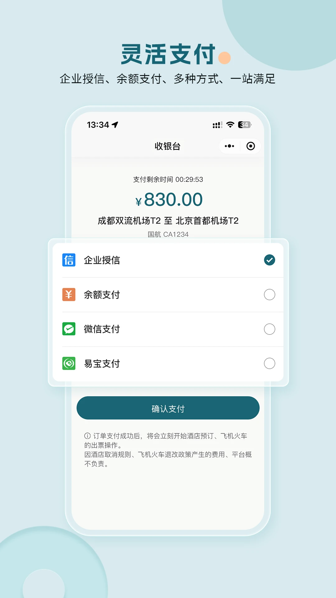 月结支付体系:企业账户支持预存与月结模式,员工免垫资报销,财务对账效率提升50%。
