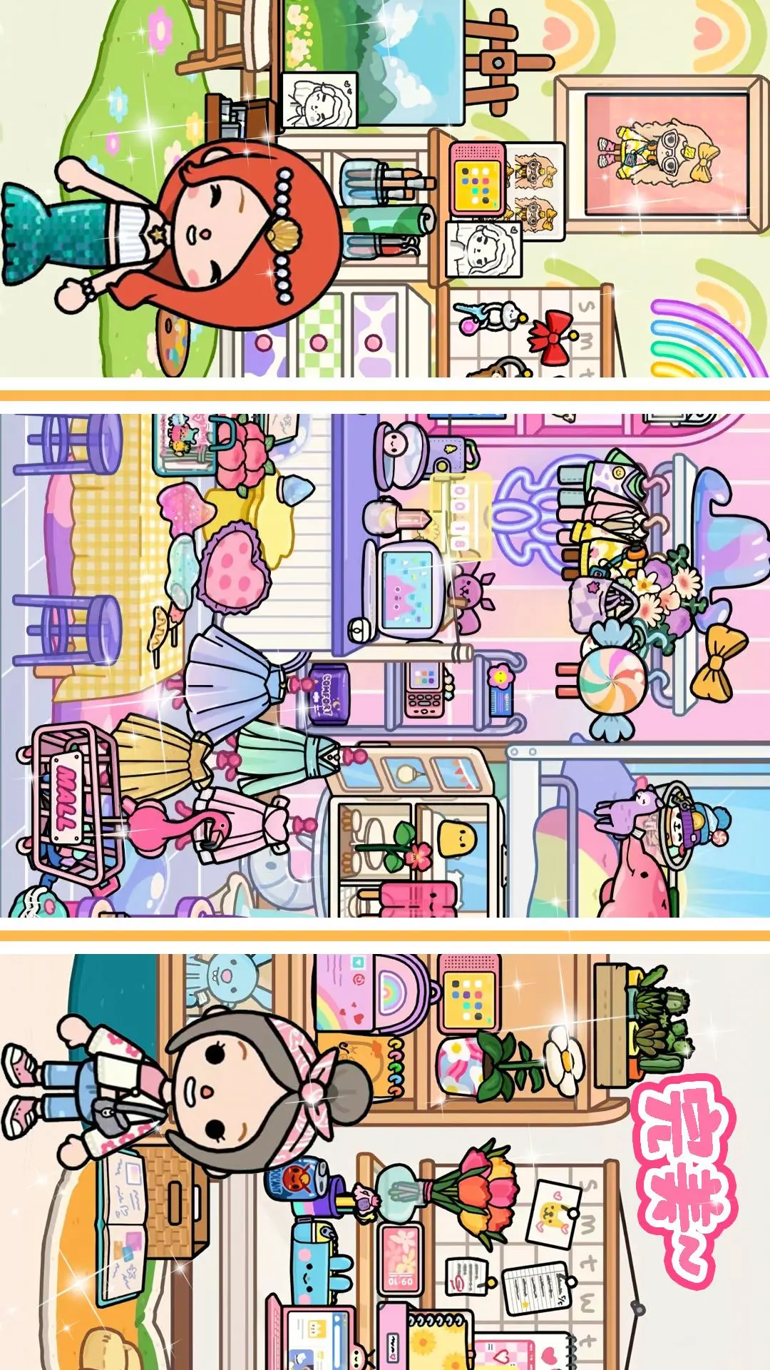 梦幻米加自建房公寓:草莓公寓、海洋公寓、枫叶大别墅,从收集资源,到垒砌砖瓦;从点缀鲜花,到摆正挂画…可以自由布置!邀请闺蜜来家中做客,开圣诞派对!